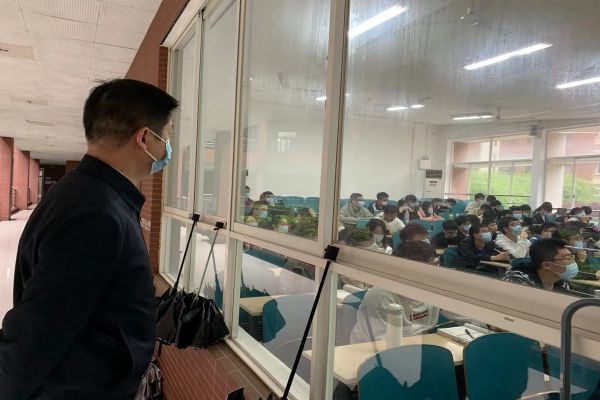 校纪委方文彬副书记在综合教学楼督查学生佩戴口罩情况