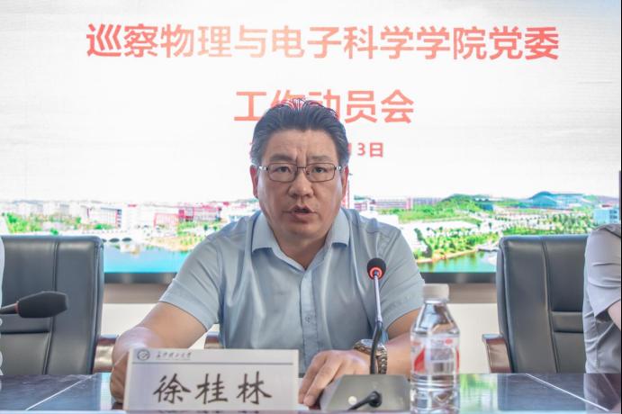 5月13日,威廉体育第七轮第二批巡察完成进驻,2个巡察组分别进驻物理与电子科学学院、体育学院。被巡察单位分别召开巡察工作动员会,省纪委监委驻校纪检监察组组长、校纪委书记徐桂林出席动员会并讲话。各巡察组全体成员、被巡察单位全体教职工、离退休教师(职工)代表、学生代表等参加会议。