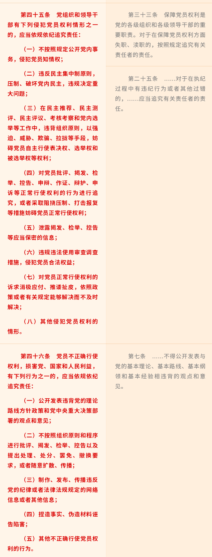 《中国共产党党员权利保障条例》修订前后对照表