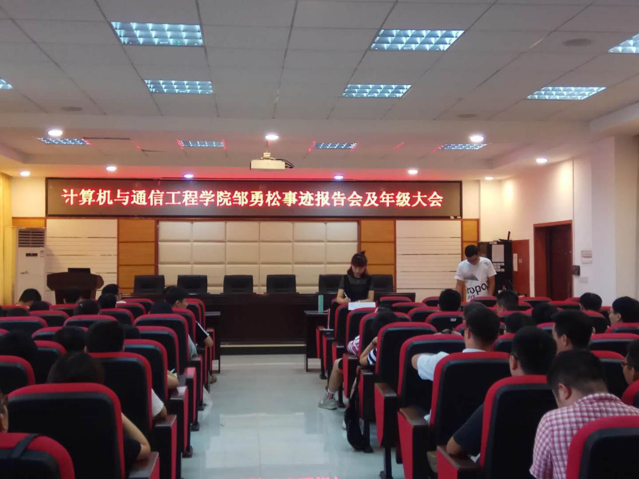 2019年6月18日下午,计通学院17、18级研究生在理科楼B311召开了以计通学院邹勇松事迹报告大会及年级大会。此次大会由辅导员易亭亭主持,17级、18级同学全员到会参与。