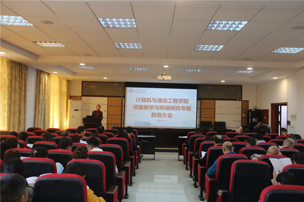 副院长蔡烁在会上发布了《威廉体育williamhill计算机与通信工程学院课堂教学规定》读本,向全院教职工深入解读了《威廉体育williamhill课堂教学规范》、《计算机与通信工程学院规范课堂教学补充规定》。蔡烁强调在疫情防控期间,教师要严格遵守规定要求,做到有情况及时报备,有困难合力解决,紧抓课堂教学不放松,确保教学运转正常,为高质量的人才培养提供保障。