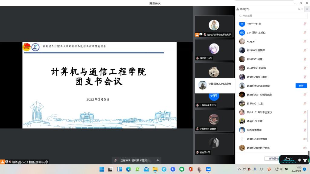 3月5日下午,计通学院通过腾讯会议组织召开了全院团支书会议。院团委副书记齐铁钧,院团委组织部、基层团建部全体成员,学院全体团支书参会。