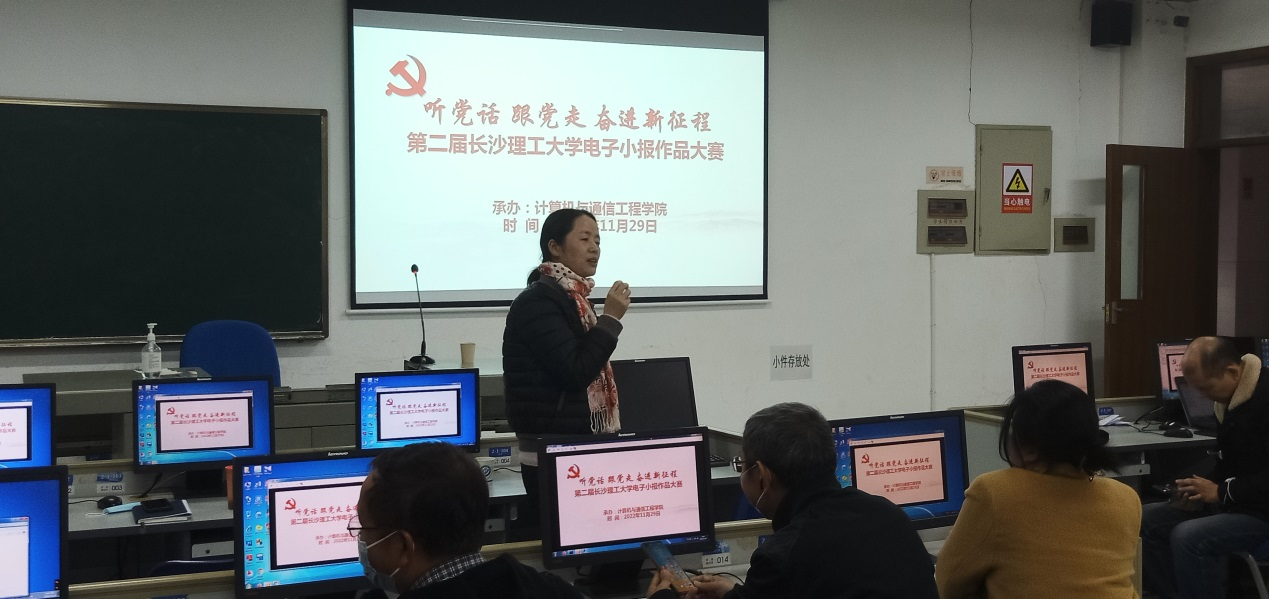 为全面落实立德树人根本任务,将课程思政的理念融汇于专业知识的教学当中,将马克思主义信仰、共产主义信念、爱国情怀、奋斗精神和湖湘文化红色基因与《计算机与程序设计基础》、《计算机基础与 Excel 数据分析》、《计算机基础与多媒体技术》、《计算机基础与应用》等课程学习有机结合。 11月29日下午,计算机基础系列课课程思政实践暨“听党话 跟党走 奋进新征程”第二届威廉体育williamhill电子小报作品评选决赛在综合实验楼机房成功举行。