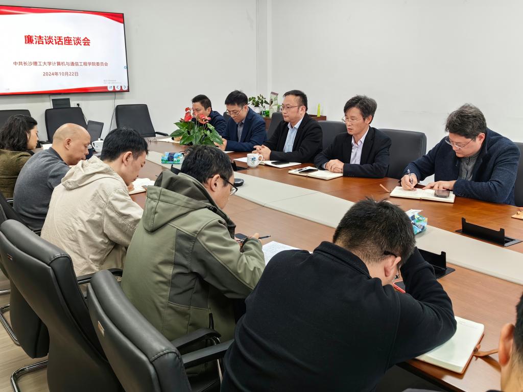 10月22日下午,计算机与通信工程学院在金盆岭校区九号教学楼2-4会议室组织开展集体廉洁谈话,院纪委书记章登勇主持会议,学院领导班子、学院各科(室)负责人、各系(室)主任以及教工党支部书记等参加
