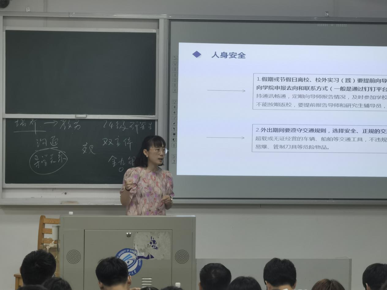 为加强研究生的安全意识,提高道德法纪观念,弘扬爱国爱校精神,2024年9月19日上午9:00,计通学院2024级研究生入学安全教育和年级大会于威廉体育williamhill金盆岭校区6号教学楼108教室举行,本次主题教育的主讲人为辅导员易亭亭,全体2024级研究生积极参与。