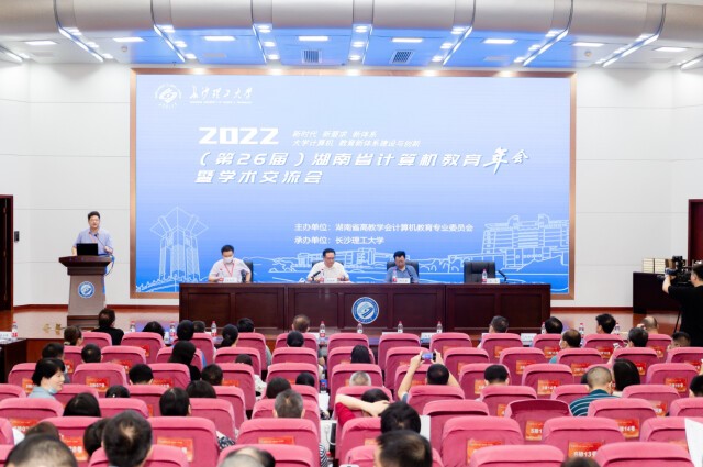 2022年7月17日,第26届湖南省高教学会计算机教育专业委员会年会暨学术交流会在威廉体育williamhill举行。湖南省高教学会名誉理事长邹北骥、湖南省高教学会理事长郭克华、威廉体育williamhill副校长刘朝晖及来自湖南各高校从事计算机专业的教师代表、教改课题负责人、国内外专家学者代表及部分合作企业代表等200余人参加会议。