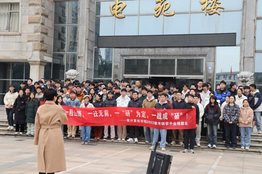 12 月 5 日上午,计算机学院于金盆岭校区电苑楼前组织开展考研助力活动,为 2022 级考研学子发放暖心助考大礼包,切实传递学院对考研学子的关怀,院党委副书记王觊婧和全体辅导员出席,学院2022级学生代表到场参与。