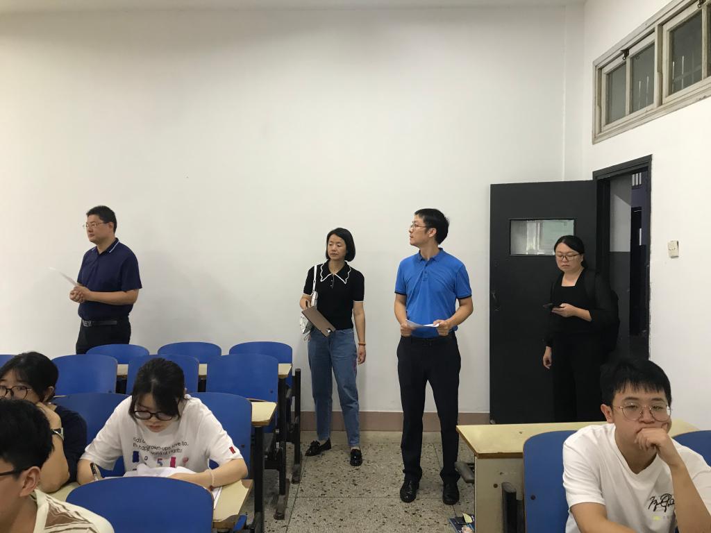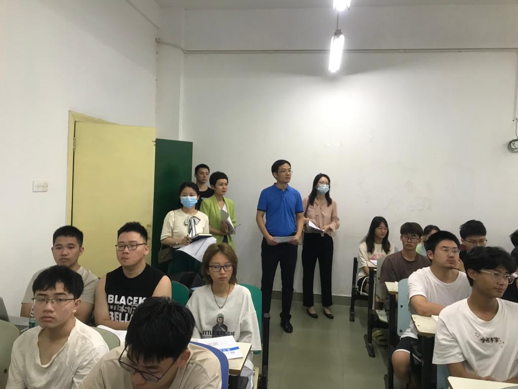 9月4日上,算机与通信工程学院党委书记孔伟红院长张锦、副书记王觊婧副院长蔡烁、夏卓群、章登勇、何施茗等领导及教务办主任、全体学生辅导员一早来到教学楼,深入教学一线检查了新学期学院“第一节课”开课情况。