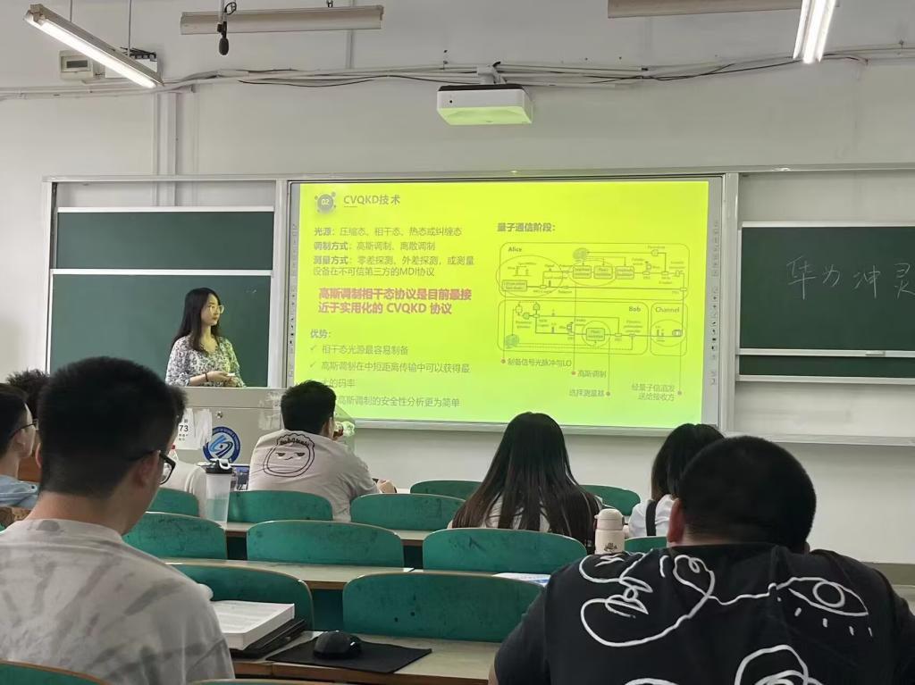 连续变量量子密钥分发自提出以来取得了一系列突破性进展,其理论安全性证明已经完备,实验上也实现了安全通信距离和成码率的突破,可以满足大部分通信场景的应用需求,具备充分的实用价值。通过毛博士的此次报告,同学们了解了量子通信/连续变量量子密钥分发的发展过程、基本思想以及应用场景;提升了学生对量子保密通信、量子密码学等前沿科学知识的认知程度,使学生初步了解了量子通信技术的应用领域;了解了量子科技发展具有的科学和战略意义;激发了同学们学习创新的热情。