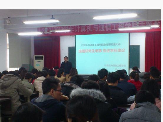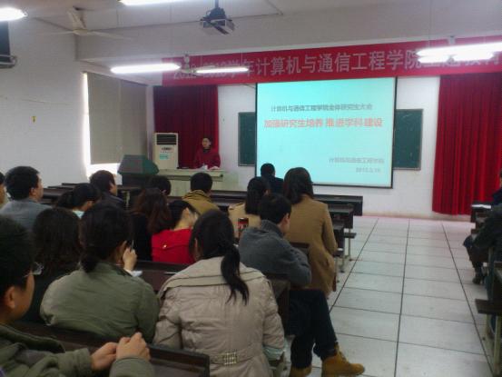 为加强研究生培养过程管理、提高人才培养质量,发挥研究生在学科建设中的重要作用,推动“学科建设年”的相关工作,3月19日下午,计算机与通信工程学院在理科楼B311隆重召开了以“加强研究生培养,推进学科建设”为主题的全体研究生大会。学院领导、研究生导师代表、研究生工作管理人员等出席了大会。