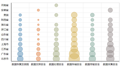图2工业大数据安全防护关键技术分支的中国专利申请地域分布