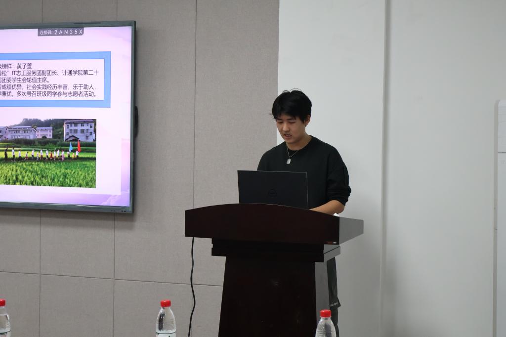 2024年11月14日晚,计通学院于金盆岭校区九教211召开2024年先进班集体验收评比答辩大会。计通学院党委副书记王觊婧、研究生辅导员郑国义、21级辅导员潘枝花、22级辅导员余泽宇、唐菲楠、23级辅导员刘洋、刘俊,24级辅导员聂静作为评委老师出席本次答辩会,24级19位学生评委参与答辩打分,11个班级上台展示参与答辩。