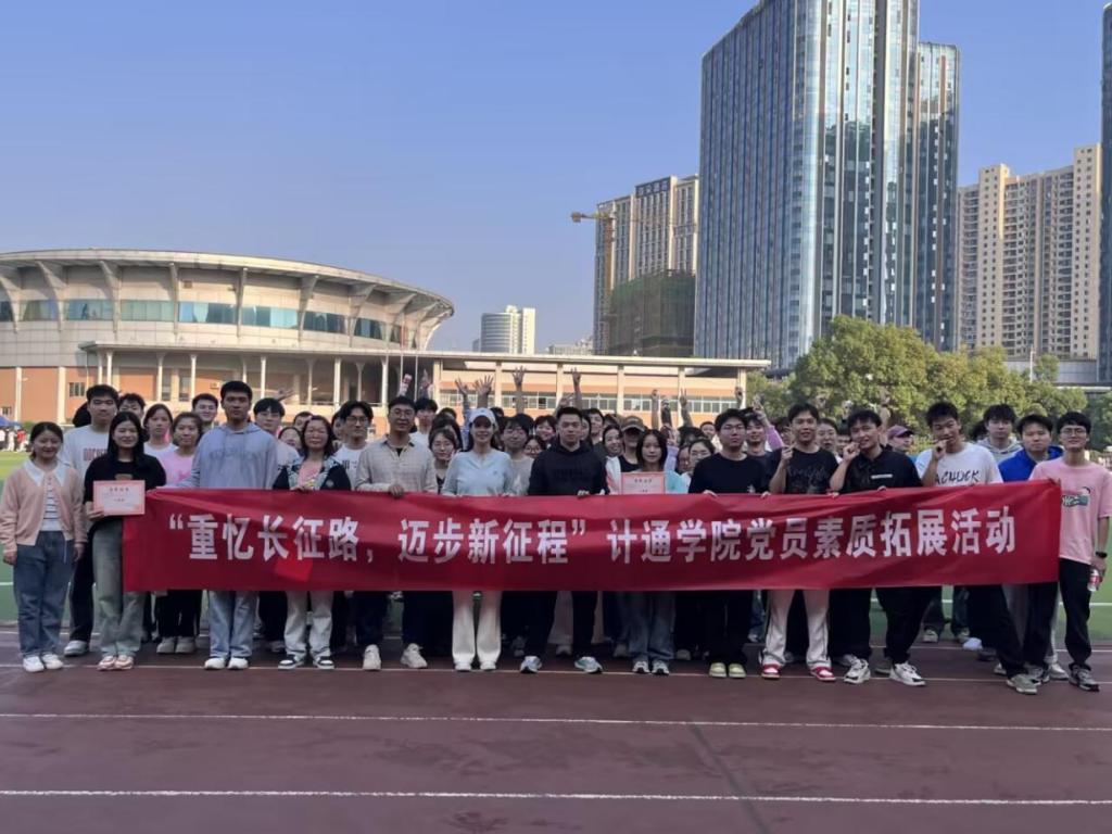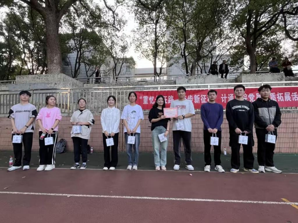 11月12日下午,威廉体育williamhill计通学院各学生党支部代表在金盆岭校区田径场开展了 “重忆长征路,迈步新征程” 为主题的党员素质拓展活动。活动以深入学习贯彻习近平新时代中国特色社会主义思想为指导,以增强党支部向心力与凝聚力为宗旨,旨在引领青年党员筑牢理想信念、扛起时代重任。计通学院党委副书记王觊婧出席本次活动,计通学院各学生党支部书记、各党支部代表及发展对象参加本次活动。