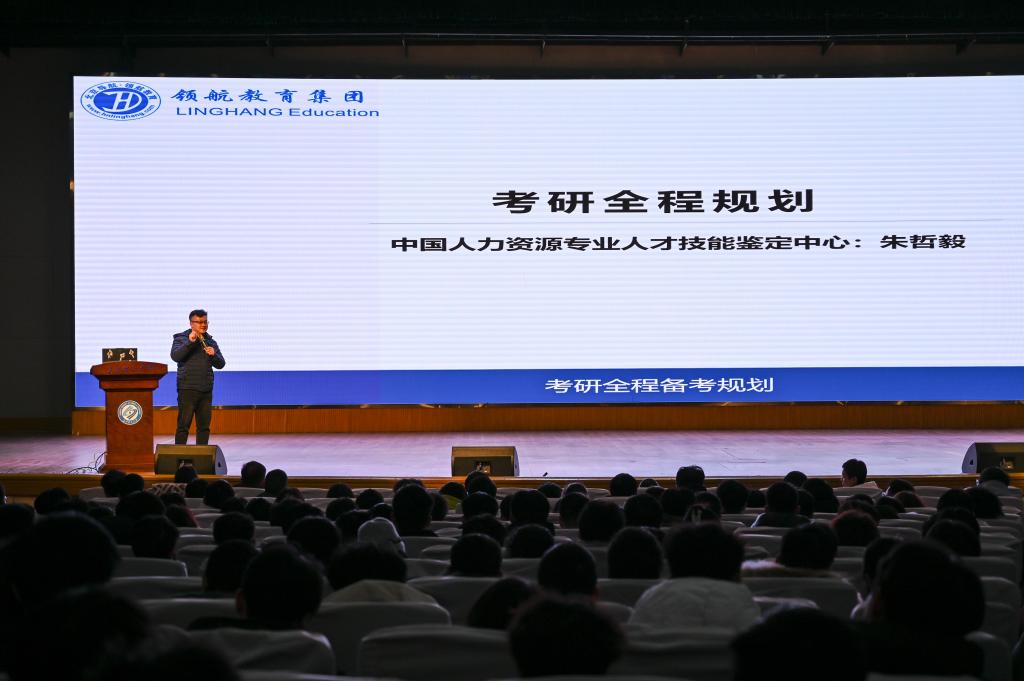 最后,领航教育朱哲毅为同学们带来了一场详尽而富有指导意义的考研全程规划讲座。他深入分析了考研的各个阶段,从备考初期的资料收集、目标院校选择,到复习计划的制定与执行,再到冲刺阶段的策略调整与心态管理,为同学们提供了一整套科学、高效的备考方案,旨在帮助大家明确方向、增强信心,为即将到来的考研之路做好充分准备。