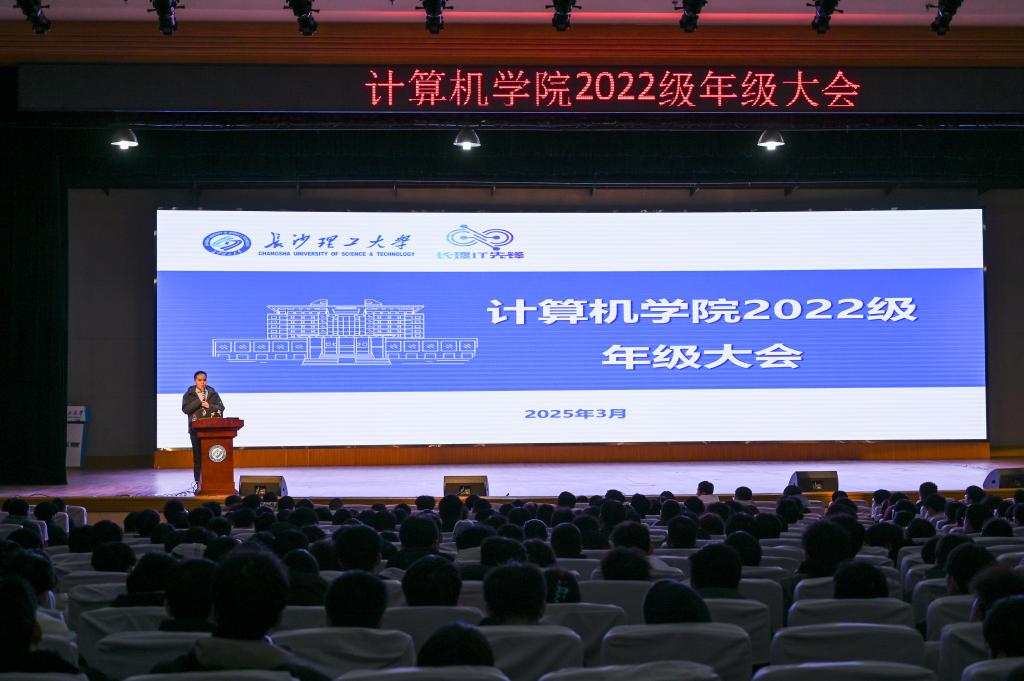 3月4日下午,计算机学院于金盆岭校区五教报告厅举行2022级本科生年级大会。计算机学院院党委副书记王觊婧、领航教育朱哲毅、22级辅导员唐菲楠出席,22级辅导员余泽宇主持。