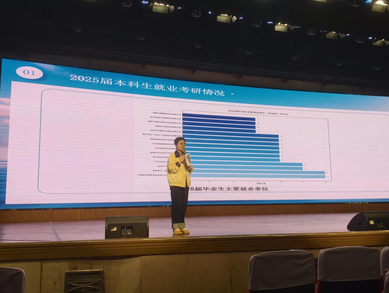 会上,王觊婧副书记结合2025、2026届就业考研数据与行业形势,针对大三下学期学生考研、就业、考公关键选择作精准指导,勉励大家夯实专业能力、理性规划路径、明确目标全力冲刺。