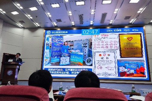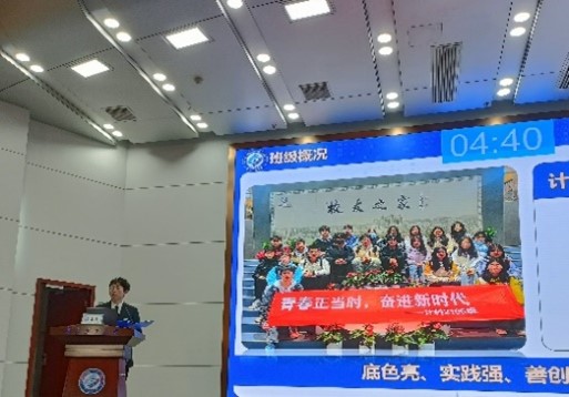 在答辩过程中,汇报人金天宇同学从“底色亮、实践强、善创新、敢担当”四个方面展示了班级建设紧跟高素质复合型人才的培养目标,并展示了班级所获得的各项荣誉以及参与的校内外实践活动,突出了班集体在学术研究和公益活动方面的积极探索与实践成果。