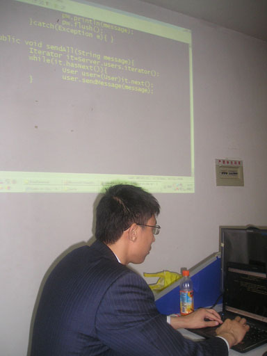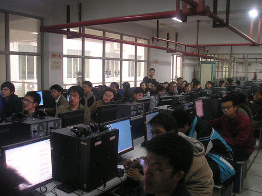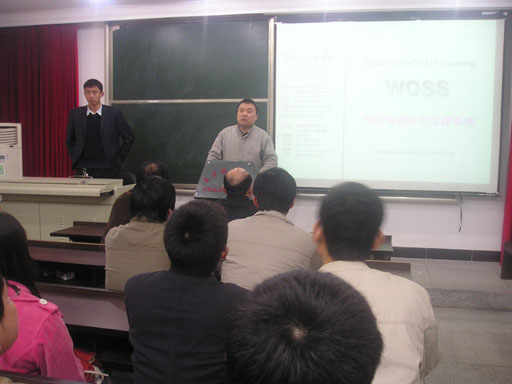 培训在计算机楼进行,五十多名尚未落实就业岗位的毕业生和部分专业教师、研究生参加了培训。在七天的培训中,学生系统学习了基于java平台的woss电信宽带运营支撑系统的应用与维护,并在jdk环境下实战开发了网络对话程序。同学们还组成团队进行开发学习,体验公司项目开发团队合作的实战环境。