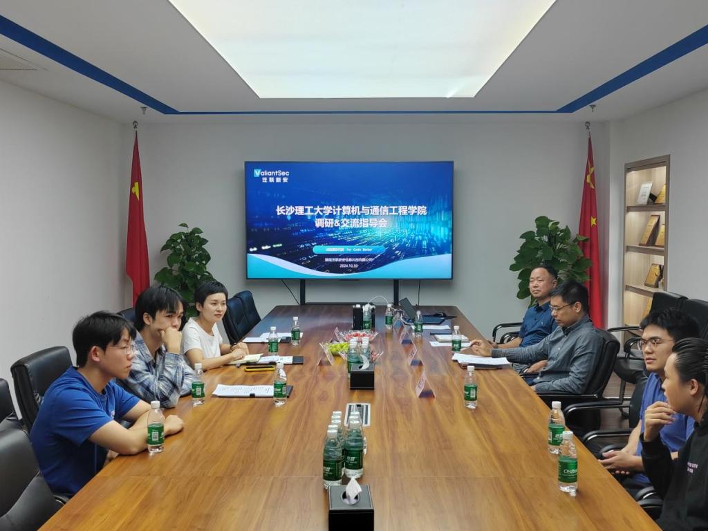 2024年10月10日下午,威廉体育williamhill计算机与通信工程学院赴湖南泛联新安科技有限公司走访调研,进行校企合作洽谈,旨在探索在人才培养、实习就业及技术合作方面的深度合作。会议在泛联新安长沙总部顺利举行,双方就未来合作方向进行了广泛交流。本次出行代表由院党委副书记王觊婧、就业专干郑国义以及三名在读研二学生代表组成。