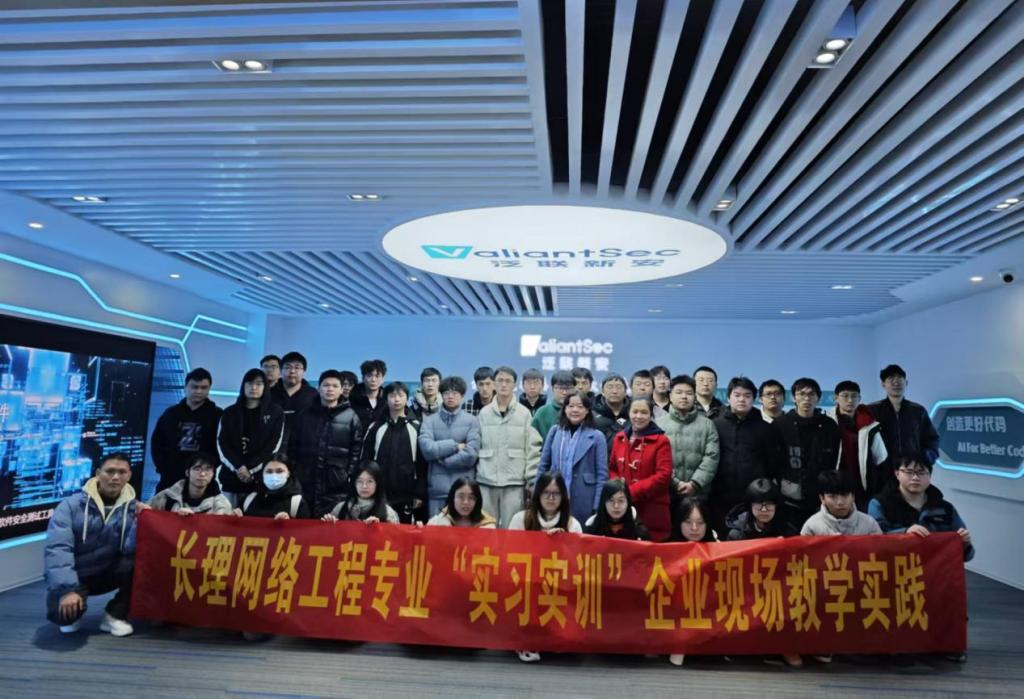 活动现场,企业方向师生详细介绍了公司的发展历程、核心产品与技术优势。通过参观办公区和产品展厅,学生们直观了解了泛联新安在软件质量测试、软件安全测试与数字IC验证领域的技术实力,特别是其在大模型研发和产业应用方面的前沿成果。
