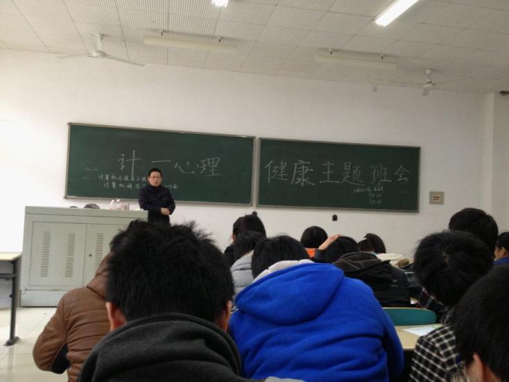2012年12月10日,计通学院组织12级11个新生班级开展了为期一周的“阳光心理,快乐启航”的心理健康主题班会。班会由辅导员或班主任主持,新生全体积极参加。