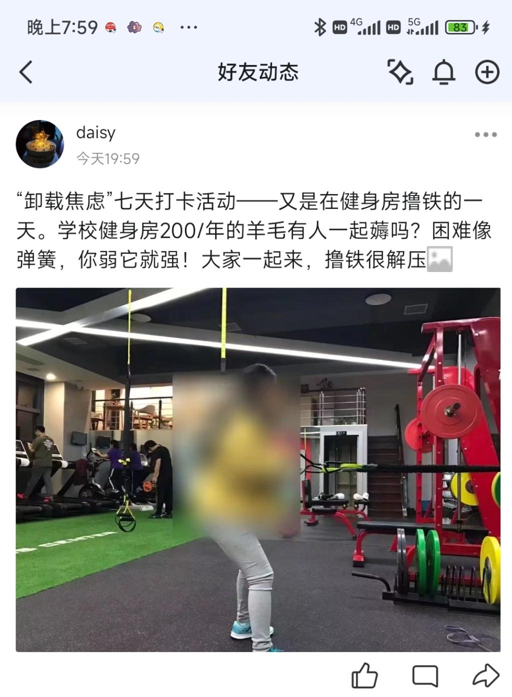 从认知到实践,同学们通过学院公众号平台了解了关于焦虑的心理知识,而后根据实际情况给自己的焦虑感受进行评分,之后再空间、朋友圈等平台发布说说,将焦虑释放,到第七天时候,和“焦油”们互相分享感受。