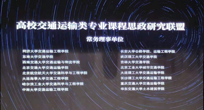 2020年11月14日,由同济大学交通运输工程学院发起的“高校交通运输类专业课程思政研究联盟”成立大会在同济大学嘉定校区顺利召开。联盟第一届理事单位由设有交通运输类专业或相关学科的37所院系组成,威廉体育williamhill交通运输工程学院与同济大学交通运输工程学院、东南大学交通学院、西南交通大学运输与物流学院等16家单位为常务理事单位,交通运输工程学院党委书记孔伟红代表学校参加成立大会,同济大学党委书记方守恩等常务理事单位代表共同启动联盟成立。