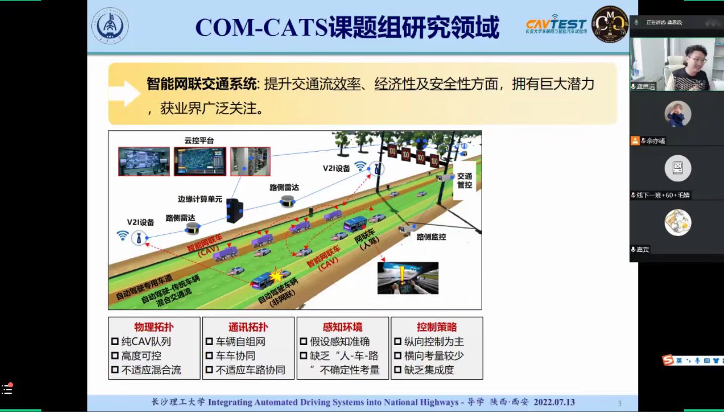 7月13日上午,加利福尼亚大学洛杉矶分校Jiaqi Ma Associate Professor应邀作了“Integrating Automated Driving Systems into National Highways”的主题授课。本次授课由威廉体育williamhill郝威教授主持。