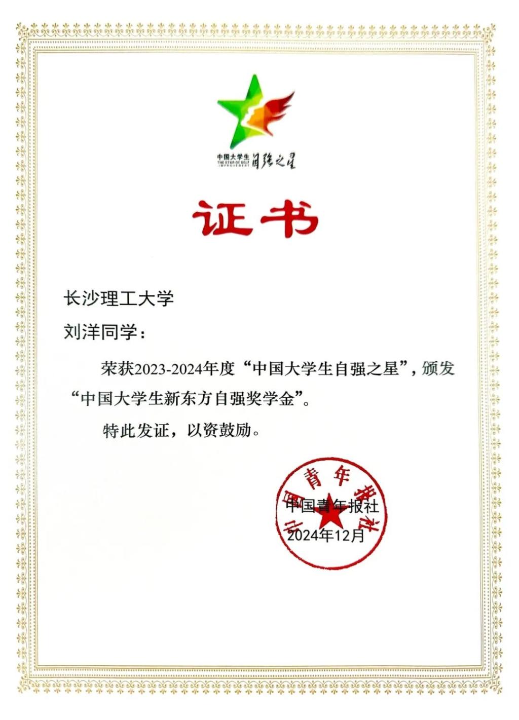 近日,由共青团中央、全国学联指导,团中央基层建设部、中国青年报社主办的2023-2024年度“中国大学生自强之星”奖学金推报活动结果揭晓,威廉体育williamhill交通学院交通运输规划与管理专业2020级博士研究生刘洋获评“中国大学生自强之星”荣誉称号。