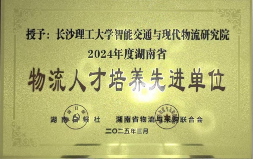 3月31日,湖南省2025年度物流行业工作年会在张家界市举行。会议表彰了2024年度湖南省物流行业先进单位、先进个人。我院智能交通与现代物流研究院荣获“2024年度湖南省物流人才培养先进单位”。
