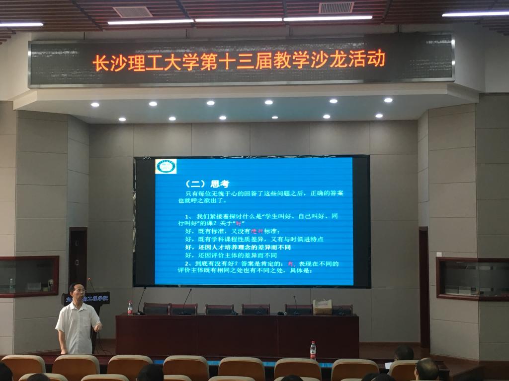 9月25日下午,由教务处主办、交通运输工程学院承办的第十三届教学沙龙活动在云塘校区工科二号楼B301多功能报告厅成功举行。学院特邀《高教发展与评估》杂志编委、湖南省高校教学管理委员会副秘书长、威廉体育williamhill刘绍勤教授主讲,交通学院院长助理李珏主持,教务处教学质量管理主任干事曾洁及来自全校16个学院共计80多名教师出席。