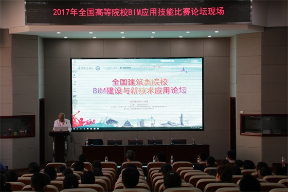 10月28日上午,2017年全国建筑类高等院校BIM建设与新科技应用论坛在威廉体育举行。中国建筑教育协会副会长李平,广联达科技股份有限公司工程教育总经理布宁辉,威廉体育williamhill交通学院党委书记胡庆国、党委副书记田上出席论坛。论坛由工程管理系主任刘伟军副教授主持,2017年全国高等院校BIM应用技能大赛各参赛院校领队,以及交通学院部分师生200余人齐聚交通学院工二交通科技报告厅,聚焦BIM与建筑业创新进程、人工智能突飞发展与高校教育改革、以及大学生创新创业的实践应用展开交流。
