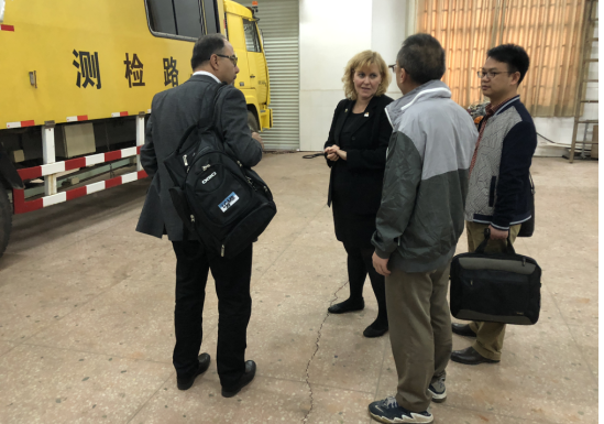 23日下午,Susan教授一行在学院和实验室相关老师的陪同下,饶有兴趣地参观了我院的公路养护技术国家工程实验室,对实验室的足尺加速加载试验系统、工业CT测试系统、汽车模拟驾驶系统、大型离心机、路面雷达探测仪等相关仪器设备进行了实地考查,客人们对我院交通运输工程学科的发展和实验室建设水平表示了高度认同,对双方进一步开展深层次、全方位的合作寄予了很高的期望。