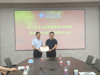 张军辉院长代表学院正式聘请吴水辉董事长担任我院研究生校外指导教师,并表示希望我院学生能到公司进行实践学习。同时,学院和公司将进一步加强深层次产学研合作,利用我院公路养护技术国家工程研究中心的实验平台优势,携手民族企业高效解决好道路工程行业的核心技术难题。
