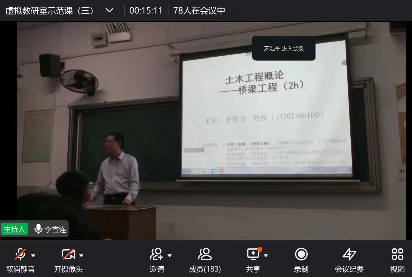 2022年11月3日晚上7:30,“行远学堂”第02期邀请到了新世纪百千万人才工程国家级人选李传习教授开讲,利用“道路工程智能建养课程群虚拟教研室”国家级平台采用线上线下相结合方式,为校内外750余名道桥渡专业师生讲授《土木工程概论》课程中“桥梁工程”章节。