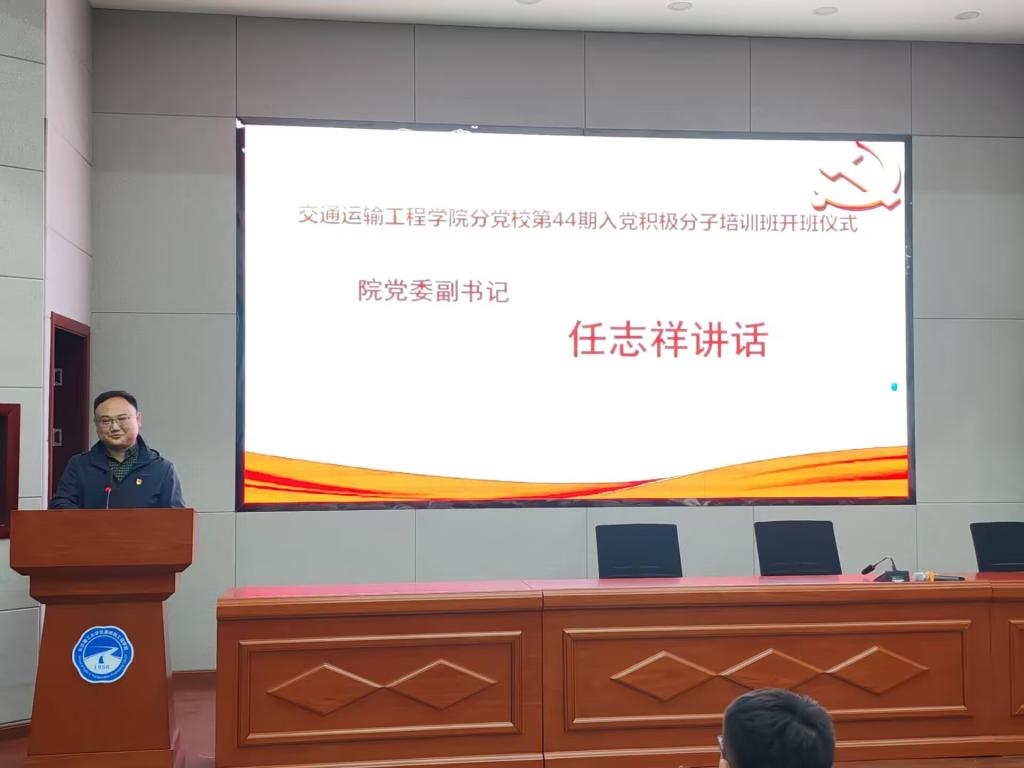 10月25日晚上,交通学院分党校于工二B301举行第四十四期入党积极分子培训班开班仪式。院党委副书记任志祥、2023级学生辅导员彭笠和第四十四期入党积极分子培训班学员参加。
