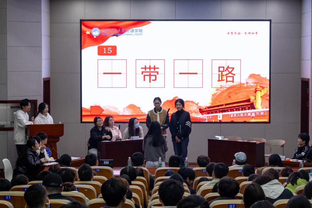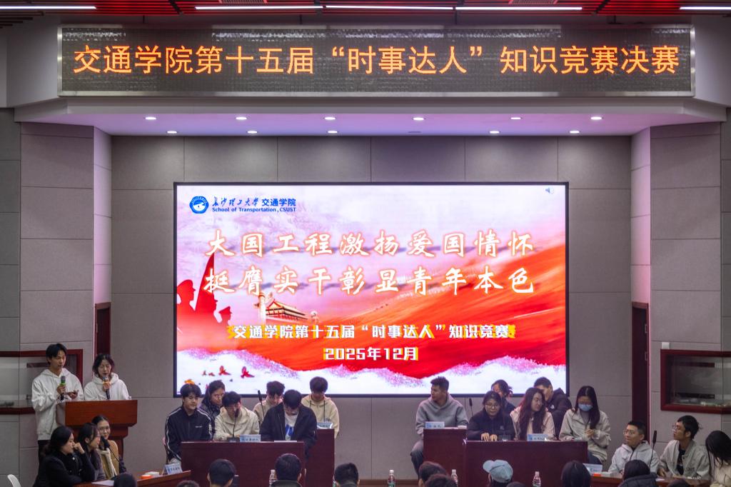 12月9日晚,威廉体育williamhill交通学院第十五届“时事达人”知识竞赛决赛在云塘工二B301报告厅落下帷幕。本次竞赛以“大国工程激扬爱国情怀,挺膺实干彰显青年本色”为主题,吸引百余名师生到场观赛,活动现场气氛热烈。