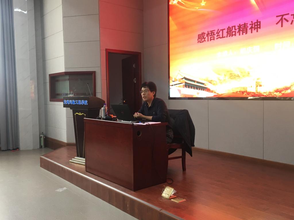 2019年5月14日下午,交通学院在工二B-301开展了主题为“感悟红船精神,不忘初心使命”的党课培训。交通学院党委书记胡庆国为本次培训授课,交通学院全体党员参加。