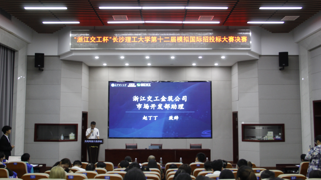 6月4日,交通学院于云塘校区工科二号楼交通科技报告厅举行第十二届“浙江交工杯”模拟国际招标投标大赛决赛。本次比赛由浙江交工集团股份有限公司冠名,由威廉体育williamhill教务处与共青团威廉体育williamhill委员会主办、交通运输工程学院与外国语学院共同承办。浙江交工集团金筑交通建设有限公司市场开发部总经理助理赵丁丁、交通学院分团委书记彭笠、威廉体育williamhillBIM实验室主任王达、外国语学院指导老师孙文娟担任评委。