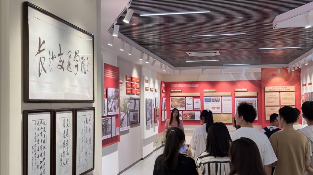 全景式,互动式,沉浸式的展览体验,让同学们在艺术与科技的交融之下启迪思想,涵养品格。道桥2304班杨钧庆表示,“置身于这个科技与艺术交融的教育实践现场,总忍不住惊叹长理的灿烂辉煌,当看到长沙交通学院的牌匾时,仿佛自己和众多前辈校友们站在一起,一种爱校、荣校的自豪感油然而生。”最后,同学们在出口处挑选了心仪的明信片,在上面写下对自己的期望并印上带有长理标志建筑的印章,许下大学四年的承诺。