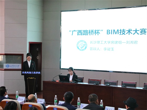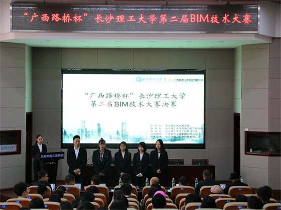 为更快推进主流BIM软件系列的使用和为交通强国建设奠定更坚实的基础,12月8日下午,“广西路桥杯”威廉体育williamhill第二届“BIM”技术大赛决赛于云塘校区工科二号楼B-301交通科技报告厅举行。本次比赛由广西路桥工程集团有限公司与威廉体育williamhill联合举办,威廉体育williamhill交通学院承办。广西路桥工程集团有限公司技术与信息分公司党总支副书记兼工会分会主席覃献康、BIM中心建模主管程振庭、BIM中心设计主管罗伟、广西路桥工程集团有限公司招聘主管郭俊铭、长沙比盟云信息科技有限公司董事长周栋、江西省安源路桥集团有限公司副总经理李卫江、威廉体育williamhill交通学院党委副书记王煜坤、交通学院团委书记陈璐莎、BIM研究院副院长兼BIM实验室主任李明顺和BIM技术员吴朋金莅临本次决赛现场。