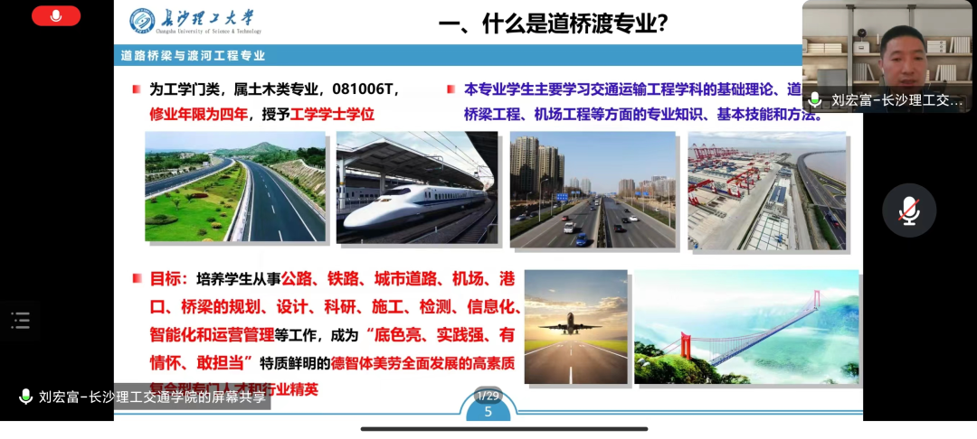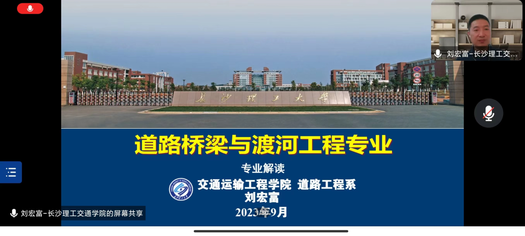 9月15日上午,交通学院开展“卓越交通青年”2023级专业认知线上课程,本次会议分专业进行,由刘宏富副教授、肖杰副教授、张生副教授、夏清副教授。张云菲副教授和刘伟军副教授主讲,2023 级全体新生参与。