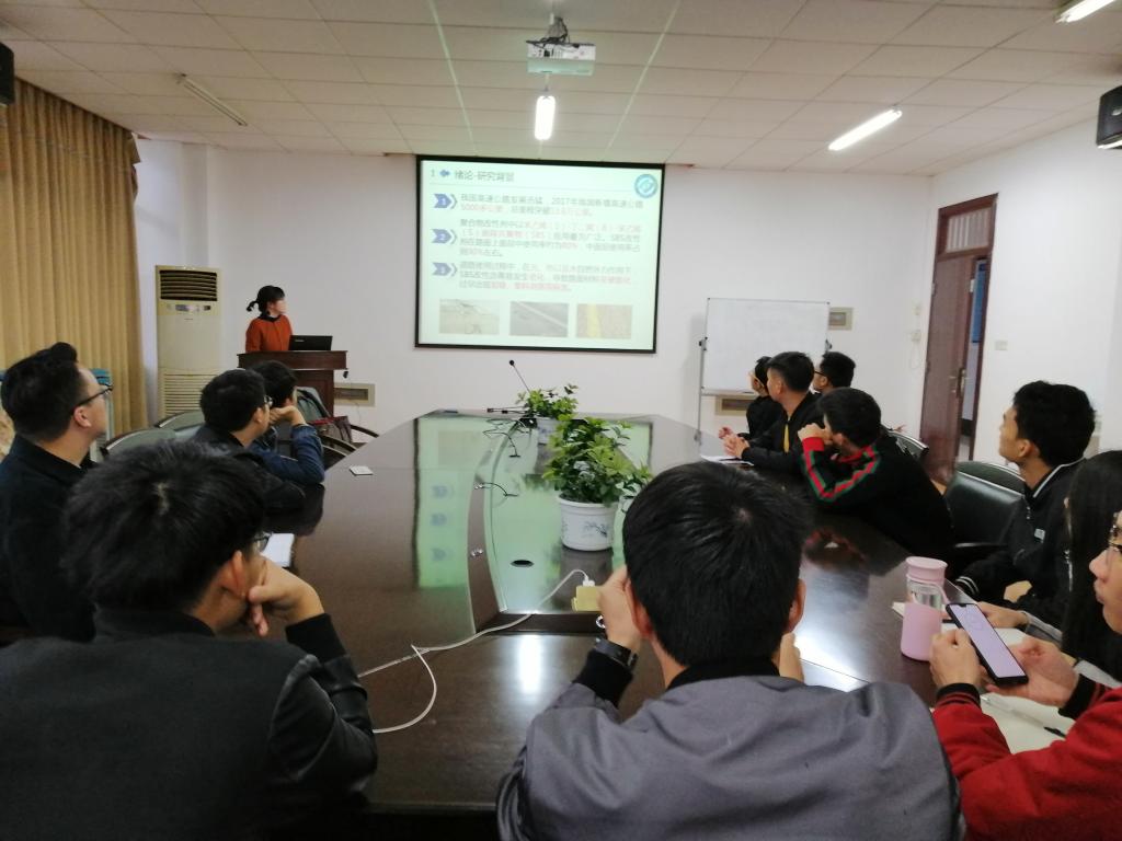 报告上,张冬梅博士主要介绍了SBS改性沥青室内加速老化性能和自然老化的研究,多尺度纳米材料对SBS改性沥青性能的影响和二者相互作用机理,并鼓励研究生大量阅读优质文献及进行试验。