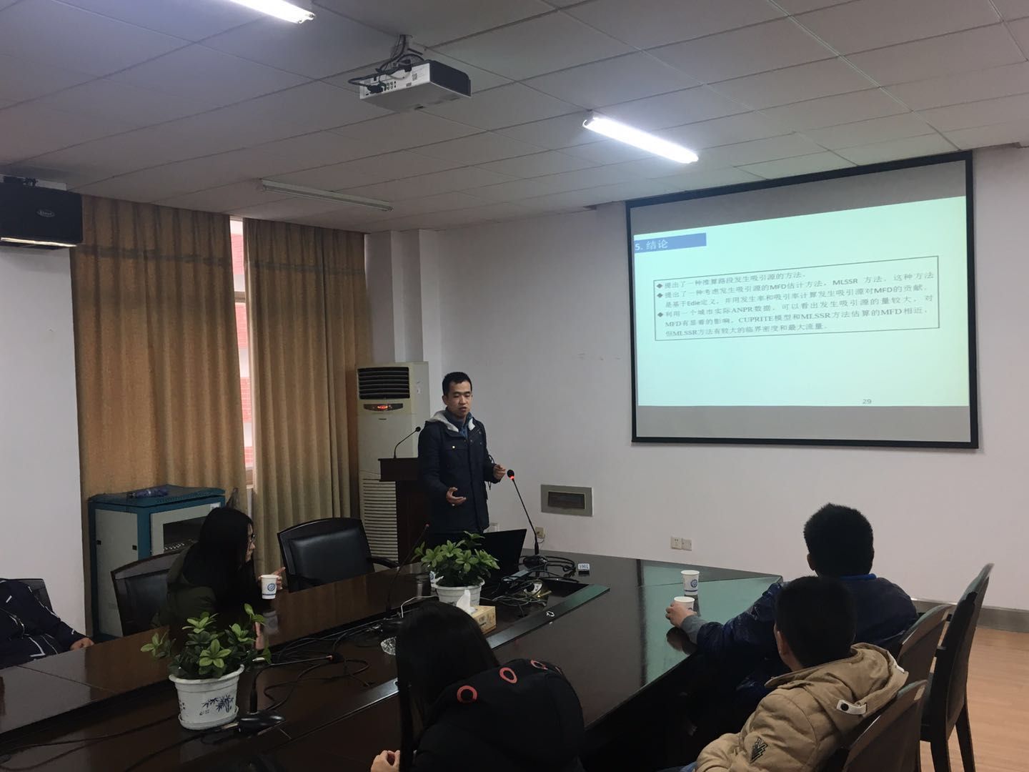 江勇东汇报了会议录用论文的核心内容,他建议同学们在写论文前进行大量的文献阅读的经验,充分了解所研究领域的发展情况后,寻找自己研究内容的创新点是论文写作的关键。随后,他和大家分享了一些在香港参会期间的照片,分析了香港与长沙的交通基础设施建设及交通运行状态的区别。最后,他鼓励同学们积极向国际会议投稿,了解专业研究前沿,开阔视野。