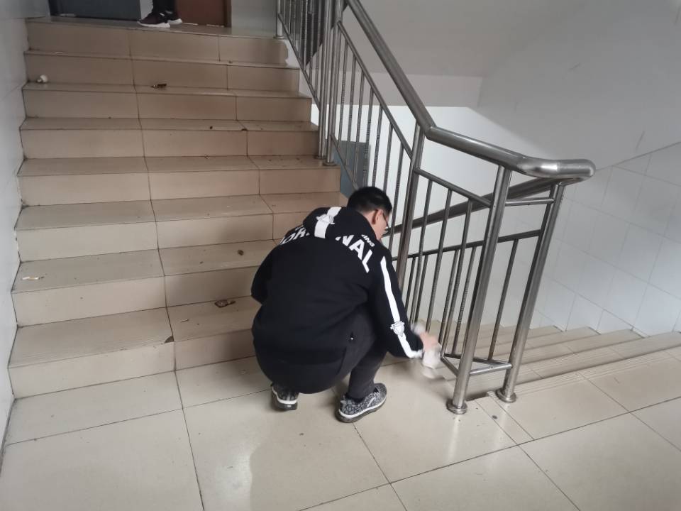 本次义务劳动主要是对行健轩3栋、弘毅轩1栋、行健轩5栋、敏行轩四栋学生公寓的楼栋前坪、楼道、走廊和草坪等公共区域卫生进行清扫。参与活动的学生自带卫生工具,到场之后根据工作安排定点分组开始打扫。期间,学生社区自管会工作人员对义务劳动的注意事项进行了详细说明,近80名同学一边行动一边排查,有的捡拾垃圾,有的擦试楼梯护栏,有的用小铁铲清除墙面上的小广告,还有的清理庭院绿地内的杂草和垃圾,力求不放过每一个卫生死角。在同学们的共同努力下,行健轩3栋、弘毅轩1栋、行健轩5栋、敏行轩的整体卫生环境得到了明显改观。