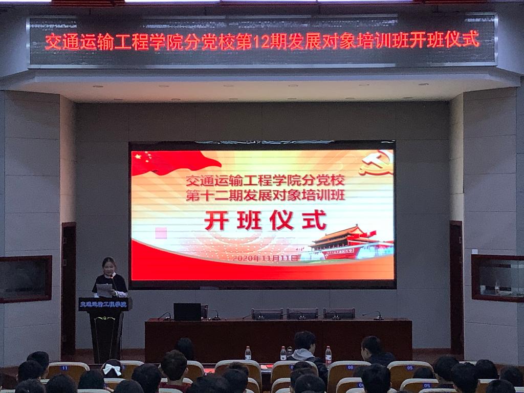 11月11日晚,交通学院分党校于工二B301举行第十二期发展对象培训班开班仪式。党校校长孔伟红、党校常务副校长王煜坤、秘书肖敏强与会,第十二期发展对象培训班全体学员参加。