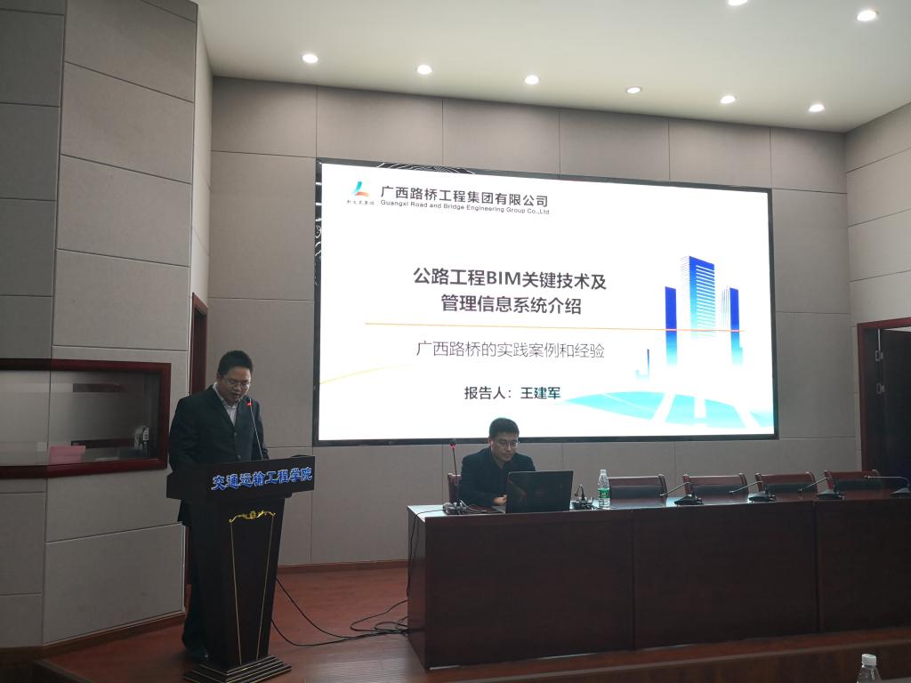 王建军以“公路工程BIM关键技术及管理信息系统介绍”为题,从BIM关键技术研发、公路工程信息化管理系统架构、广西路桥BIM技术中心、校企BIM团队合作模式探讨等四个方面对BIM技术在工程实践中的应用进行了详细讲解,让在场师生对BIM技术及其应用有更深入了解与认识。最后,何忠明对讲座进行了点评与总结,讲座中师生还进行了深入互动交流。