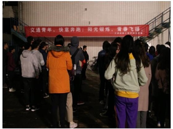 交通学院阳光晚跑活动积极响应湖南省大学生“走下网络,走出寝室,走向操场”的号召,为同学们创造一个交流互动及展示自己的平台。