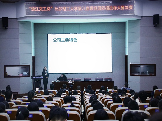 为使学生进一步了解工程投标的流程,熟练运用专业英语,强化专业技能。由共青团威廉体育williamhill委员会主办,共青团威廉体育williamhill交通运输工程学院委员会和外国语学院委员会承办的“浙江交工杯”威廉体育williamhill第八届模拟国际招投标大赛,10月28日晚于工二交通科技报告厅举行决赛。出席决赛的嘉宾有浙江交工国际工程有限公司党委书记、董事长吴佑平、交通学院党委副书记田上、外国语学院党委副书记陈仁凯。