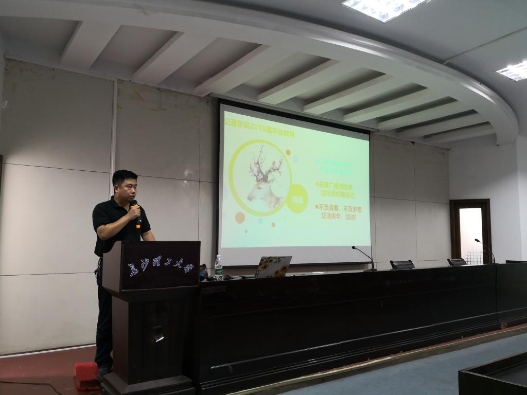 6月14日下午,交通学院2018届本科毕业生毕业教育大会在12教200组织召开。学院党委副书记田上、党建辅导员肖敏强及年级辅导员曾凯与全体毕业生一同参加,会议由曾凯主持。